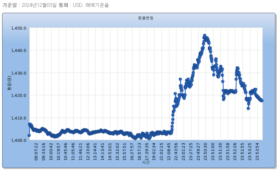 - 계엄령 선포 시점: 외환 시장 혼란, 환율 급등락 가능성.