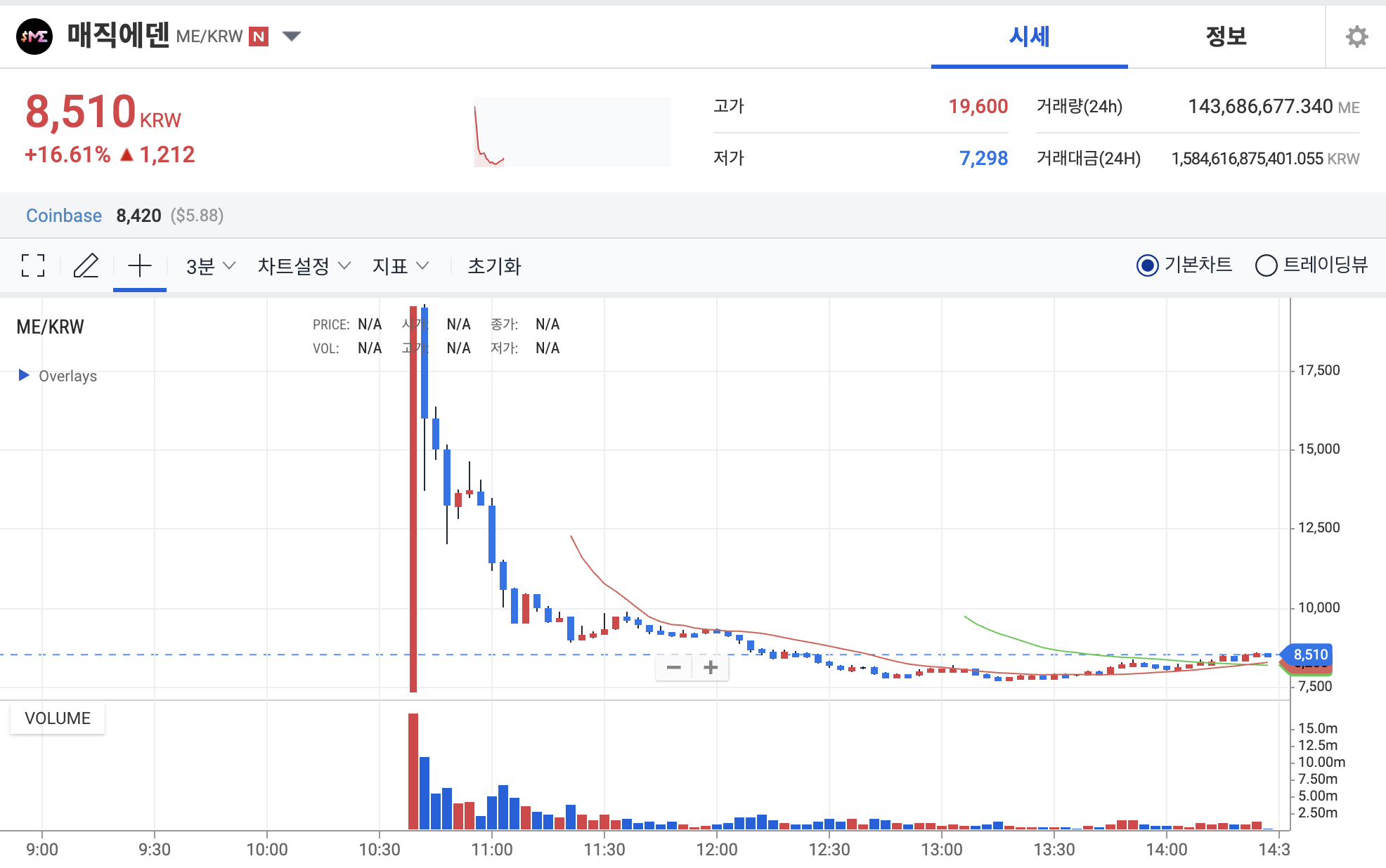매직에덴 업비트 거래 시작 후 추이